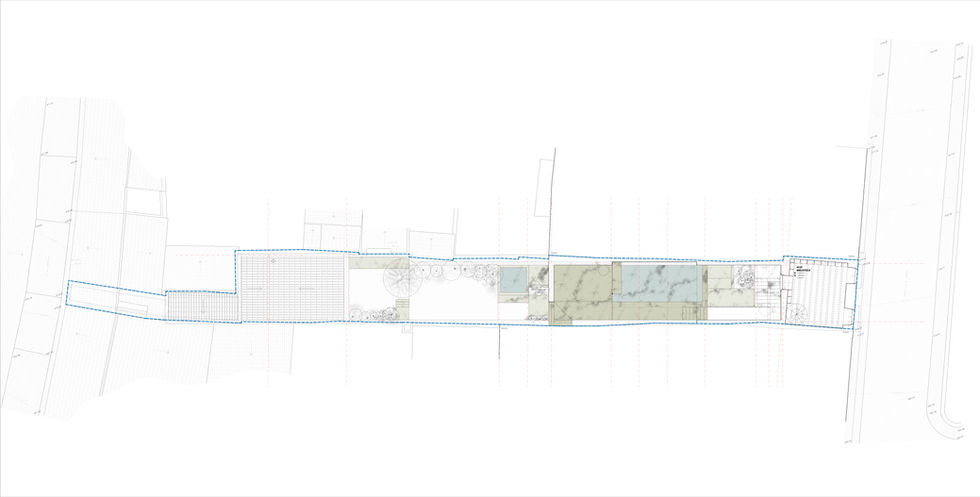 Behing the rigorously designed facade, we aimed at establishing an unexpected palace - a sequence of rooms and spaces, places for entertaining, whose generous proportions are opposed to the slender circumstances. Seclusion was also sought - a paradise, an enchanted place with a long narrative redeeming the promises that time eroded: mystery, surprise and beauty.